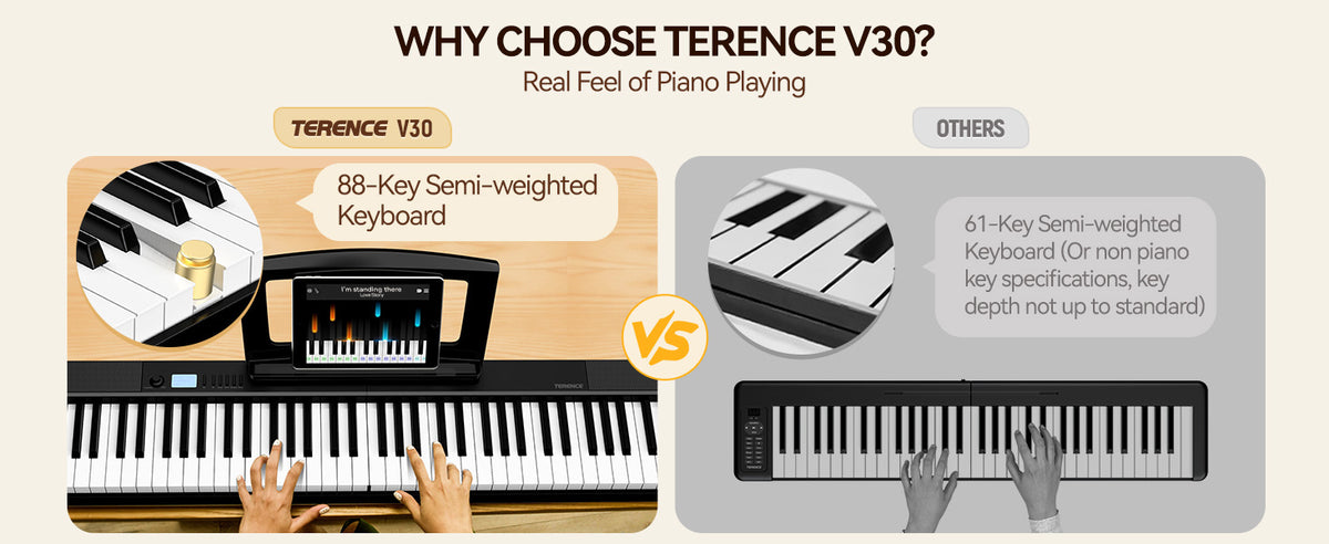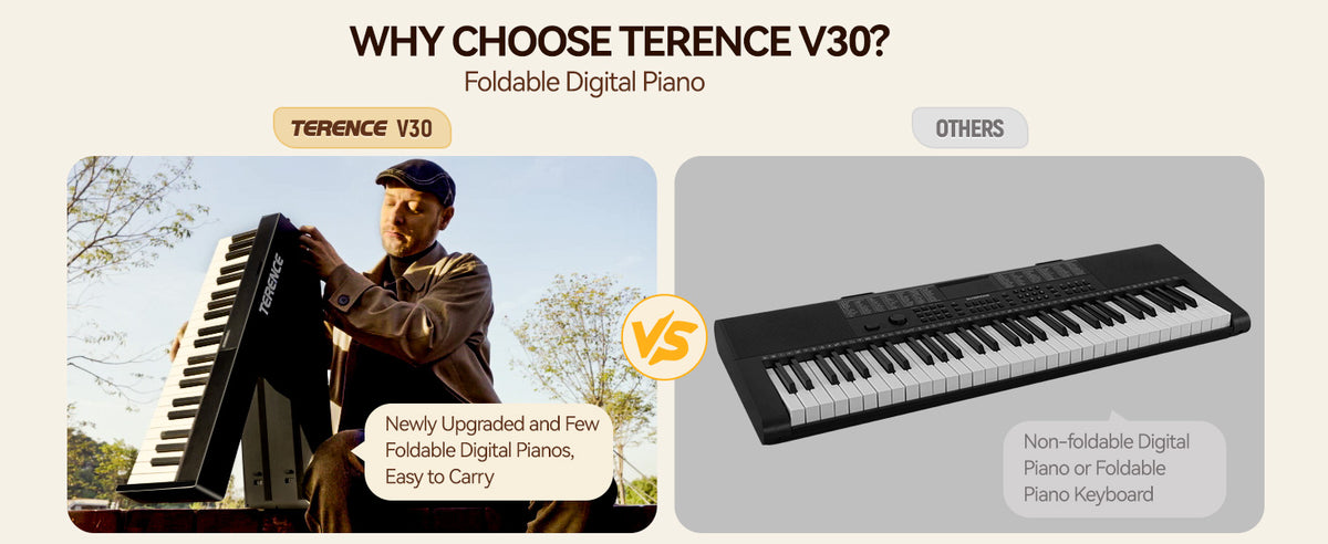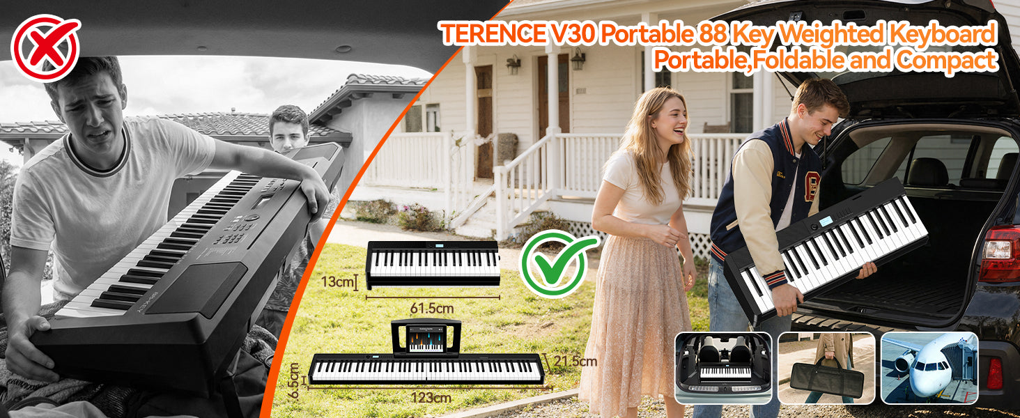 Terence V30 Pro Foldable 88-Key Digital Piano with Fully Weighted Keys